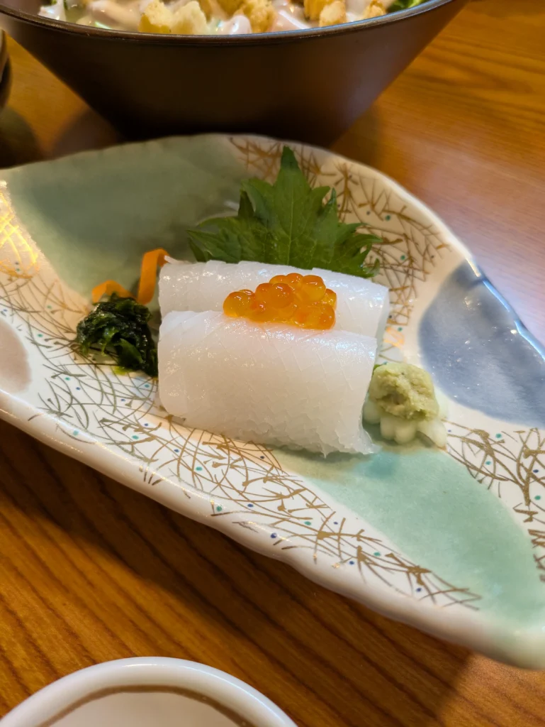 透明感のある身はもっちりと弾力があり、噛むたびにイカの自然な甘みが広がります。